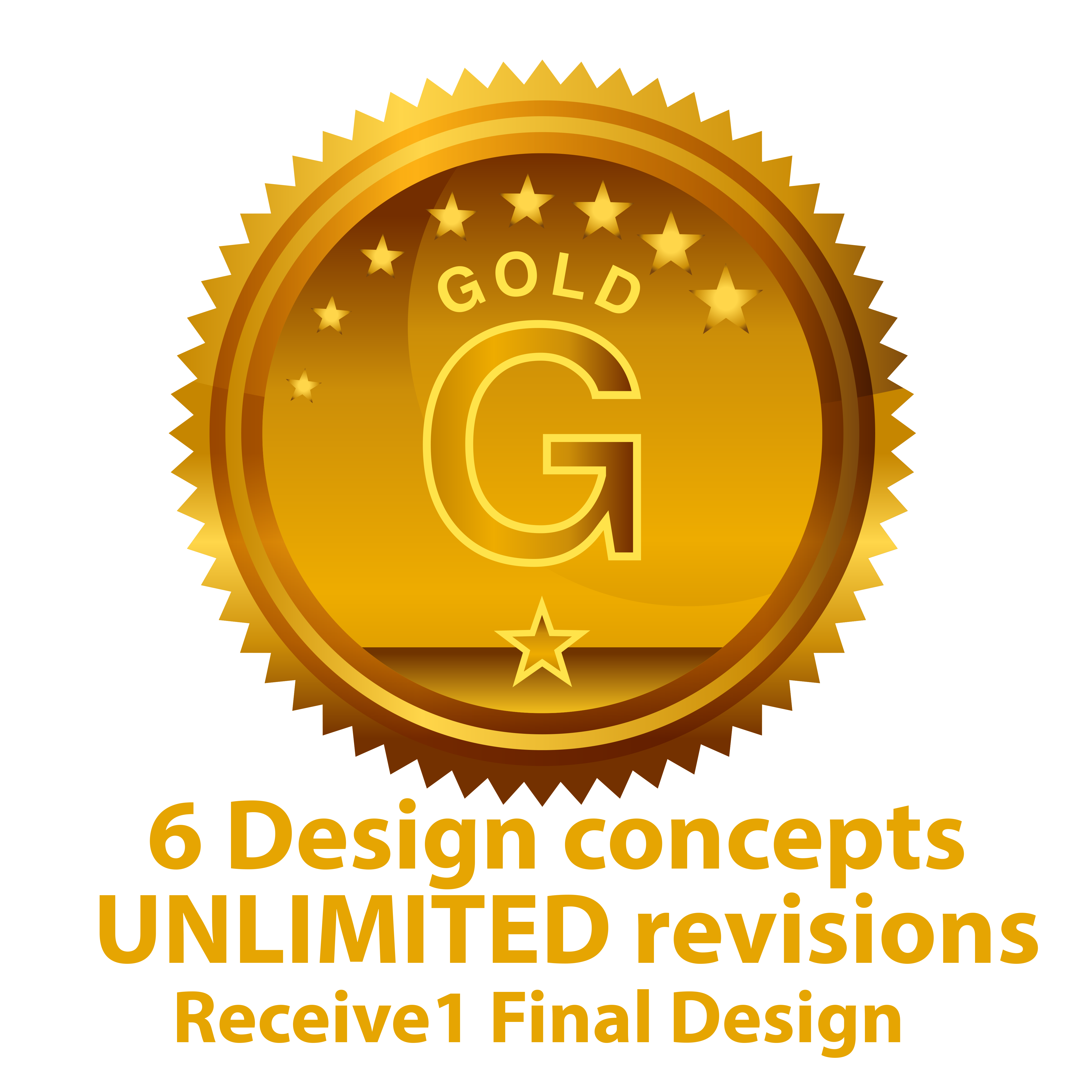 Gold design request package includes 6 design concepts with UNLIMITED revisions -- Delivery within 24-48 hours M-F